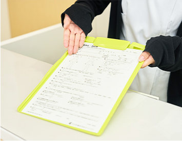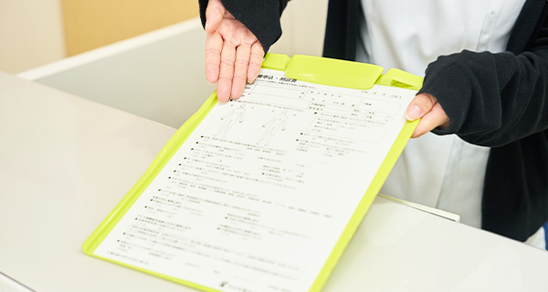 ささき整形外科クリニックにお越しの際は、受付で「交通事故での治療希望」とお伝えください。事前にお伝えいただくことで、必要な手続きがスムーズに進みます。